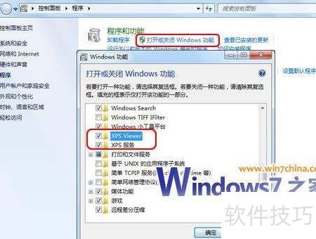 11、 Windows 7与Windows Server 2008 R2系统已内置XPS查看功能,启用后用户可在IE 7中直接打开并打印XPS文档。同时,只需在任意支持该格式的应用程序中选择打印到XPS选项,即可轻松创建XPS文件。若功能未开启,可按以下步骤操作:进入控制面板,选择程序,点击打开或关闭Windows功能,在列表中找到Microsoft XPS Document Writer并勾选启用,确认后系统将完成配置,之后即可正常使用XPS相关功能。