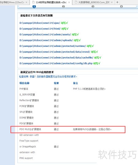 3、 检查服务器环境时需留意PDO MySQL扩展,万网免费主机默认已启用,而阿里云ECS主机则默认未开启,须手动修改php.ini文件进行配置方可启用该模块。