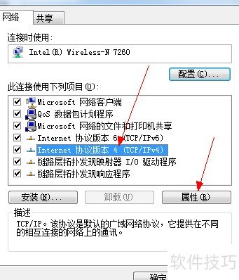 3、 选择Internet协议版本4,然后点击属性按钮进行设置。