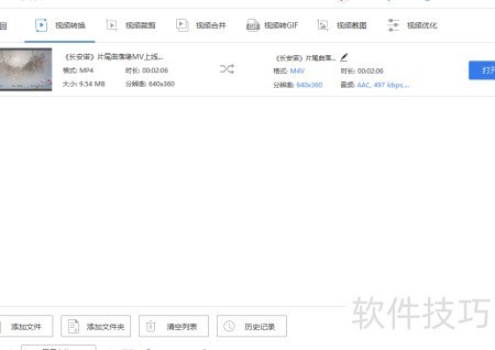3、 将待转换的MP4视频文件通过添加文件功能导入软件中打开。