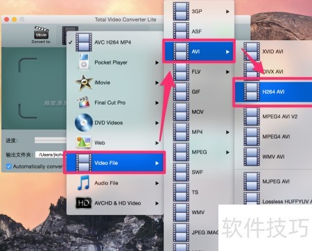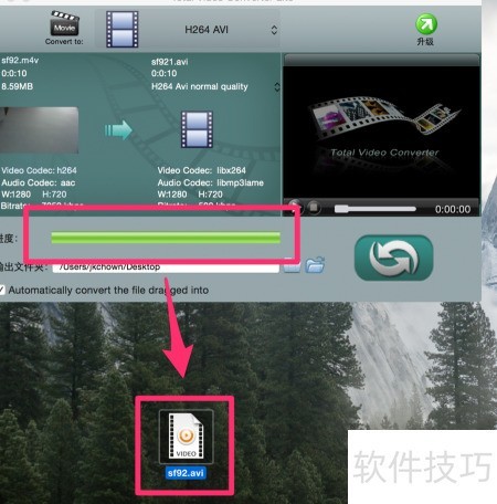 5、 无需任何设置,只需点击软件Total Video Converter Lite标题下方的H264 AVI选项,即可进入视频自动转换界面,操作简单便捷,轻松完成格式转换,适合各类用户快速上手使用。