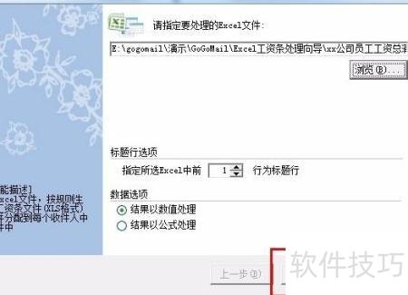 2、 在GoGoMail主界面点击Excel-工资条处理向导(附件),将弹出相应的Excel工资条处理向导对话框,详见图1.2。