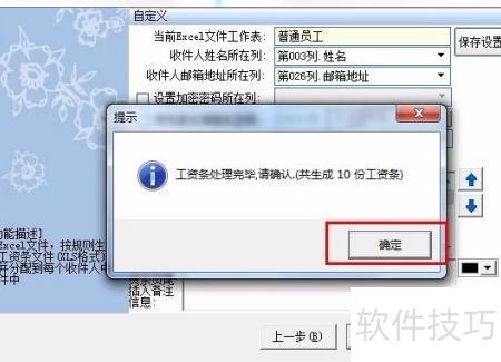 7、 工资条处理完成提示出现后,系统自动制作并发送完毕。