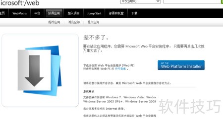 5、 下载并安装Microsoft Web平台安装工具,按提示完成设置即可。
