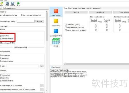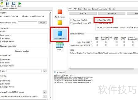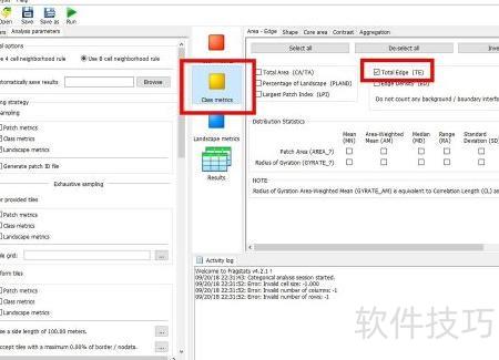 3、 上方标出的三个选项中,至少需选择其中一项。若需计算Patch级别的指标,则勾选对应项,其余类推。由于本次需要获取Class level与Landscape level的总边界长度(Total Edge),因此选择了和两项,以确保相关参数能够被正确计算与输出。