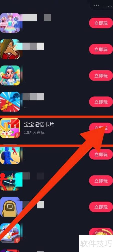4、 进入游戏页面后,点击宝宝记忆卡片右侧的红色按钮。