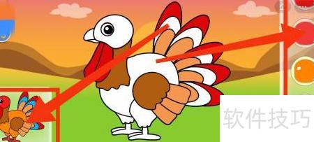 6、 根据左下角的示例图案,从右侧调色板选取对应颜色,点击画面中的线条区域进行填色,使完成后的图像与示例一致,即可顺利通关。