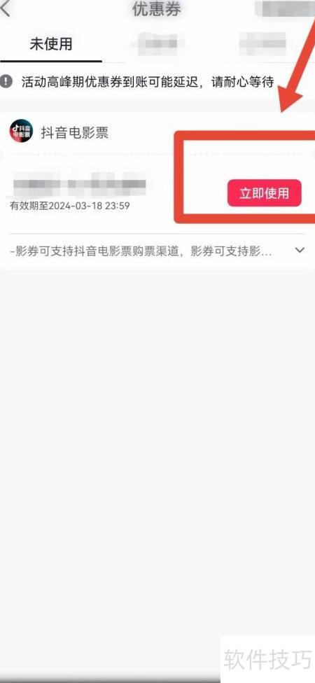 3、 进入未使用优惠券页面,点击立即使用即可完成购票。