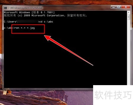 4、 进入文件所在文件夹,输入ren *.* 修改后的后缀名,然后按回车执行。