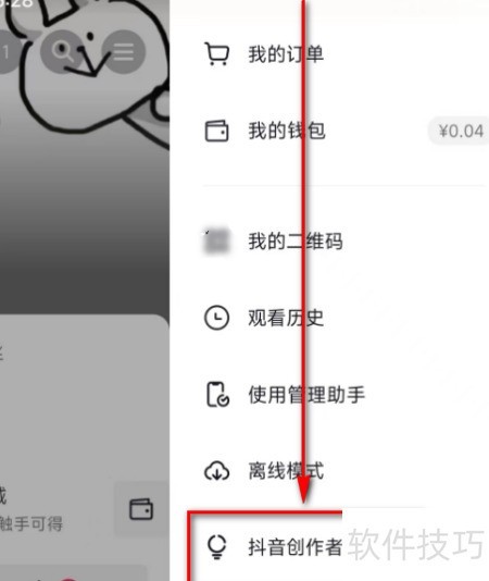 4、 进入三道杠界面,选择抖音创作者中心即可。