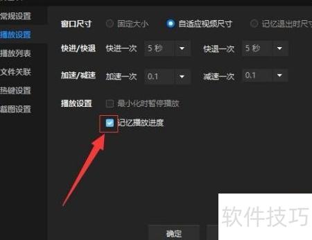 4、 勾选记忆播放进度前的复选框,启用该功能,操作所示。