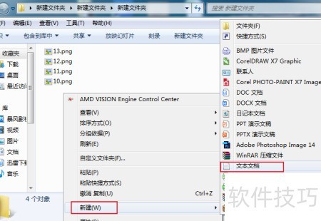 2、 在空白区域右键点击,选择新建,然后选中文本文档即可创建。