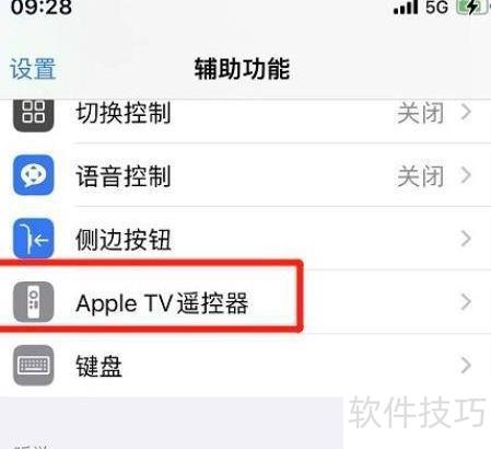 4、 在辅助功能页面中,选择并进入Apple TV遥控器设置选项。