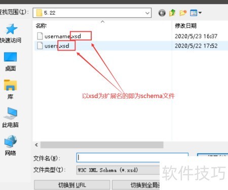 6、 点击浏览按钮,选中已保存的xsd格式schema文件,将其添加至选择框内,确认后即可完成约束的导入操作。
