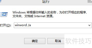 8、 在运行对话框输入winword /a并确认,即可启动Word并恢复其默认设置。