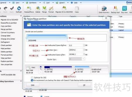 5、 通过拖动滑块或输入数值设定分区大小,所示。