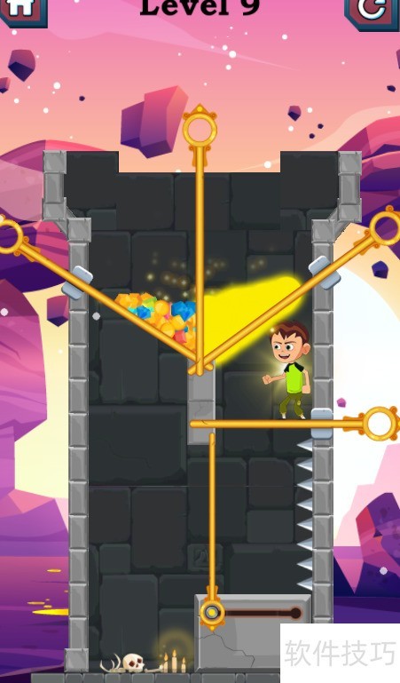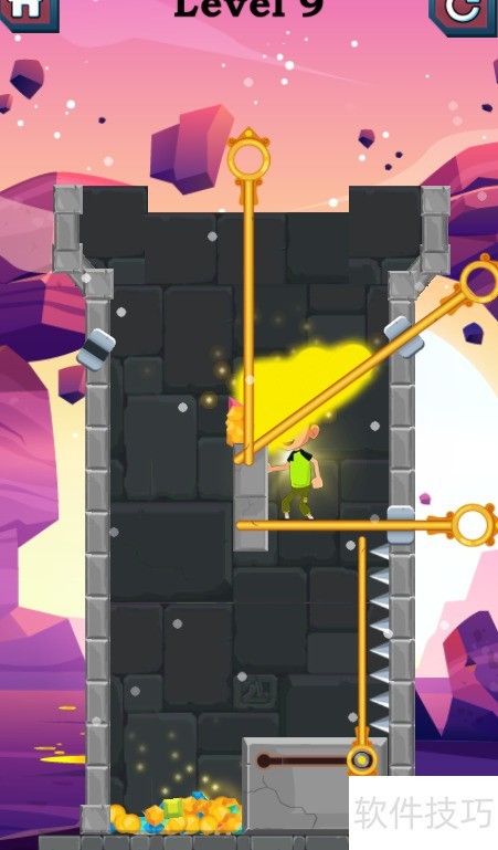 1、 本关需利用推拉杆避免落入陷阱,具体操作见图示。