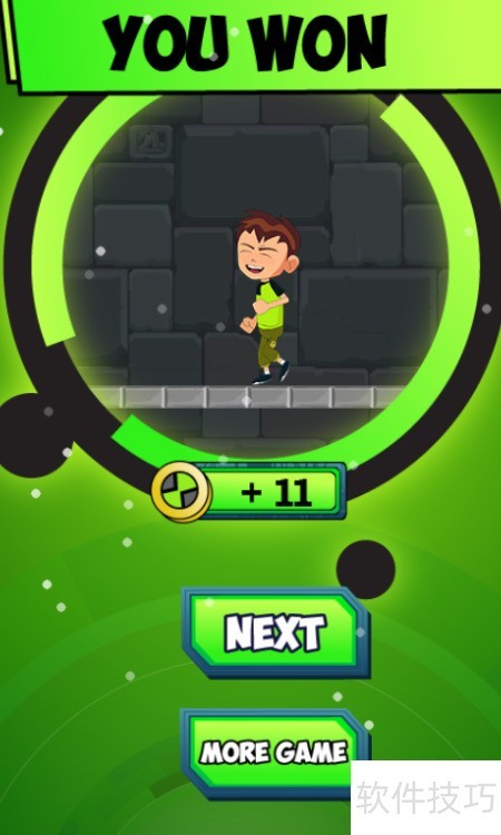 5、 少年寻得宝藏,屏幕弹出YOU WON动画,顺利通关。