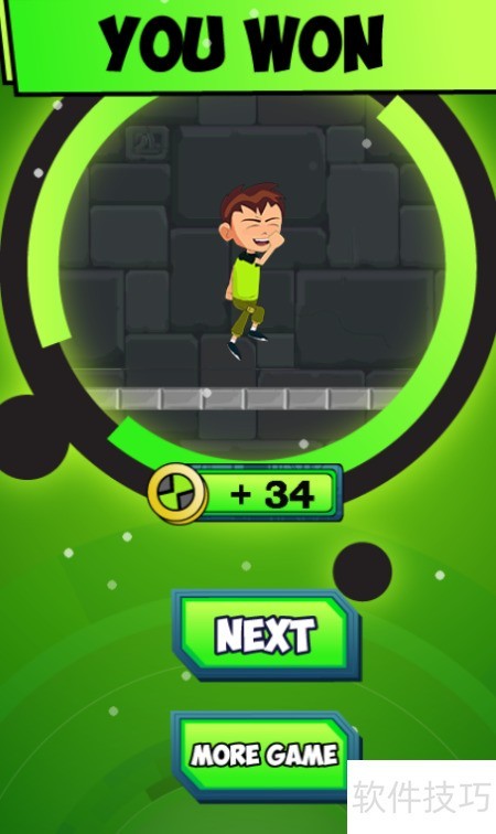 5、 少年跃下开启宝箱,屏幕弹出YOU WON,画面如示,顺利通关。
