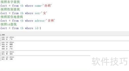19、 从表中查询地址为吉林的所有记录。
