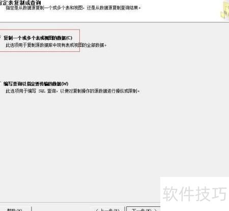 6、 选择复制一个或多个表及视图中的数据。
