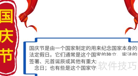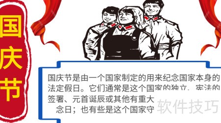 3、 绘制文本框,填入小学生简单国庆手抄报的主题内容,如节日意义、祝福语等。