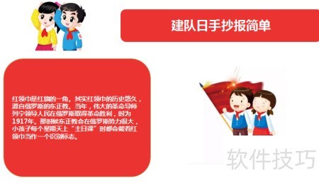 4、 绘制与建队日相关的简明图案,突出手抄报主题,体现建队日的简单与庄重。