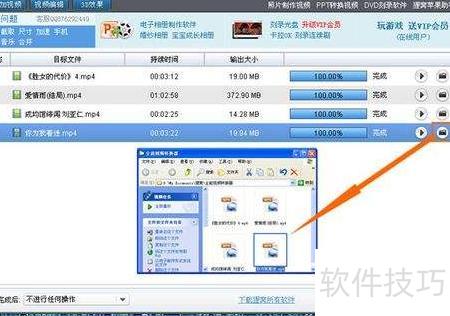 2、 视频转换完成后,点击文件所在行右侧的小三角按钮即可预览播放。若要查看存储位置,可点击文件夹图标按钮,系统将自动打开对应目录,方便找到已转换的视频文件,操作直观便捷,具体界面所示。