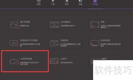 2、 在工具箱目录中查找VR视频转换工具