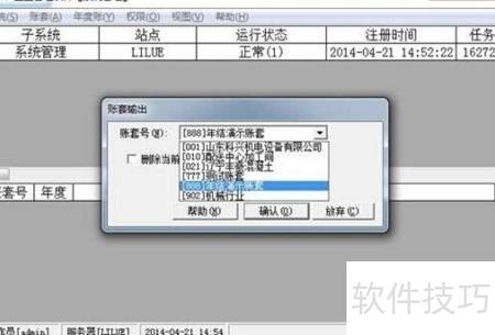 3、 勾选要删除的账套及删除当前输出账套选项,确认即可完成操作。