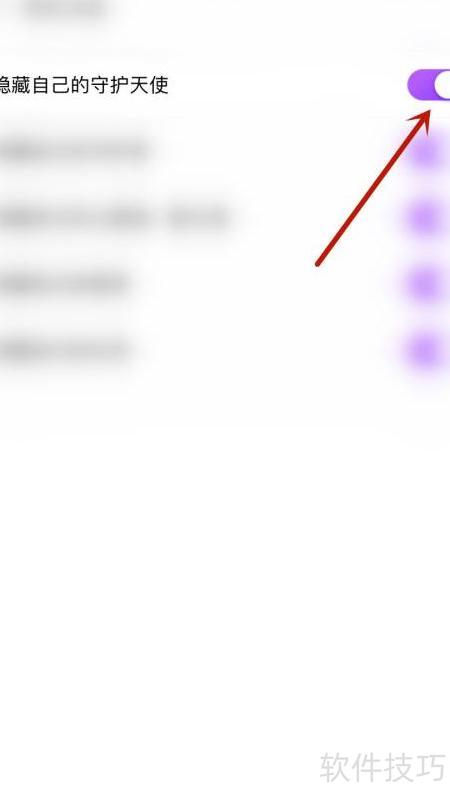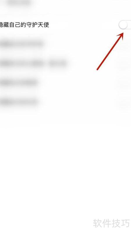 3、 在设置中点击隐藏自己的守护天使选项右侧的圆点。