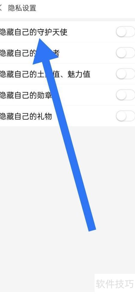 4、 进入隐私设置页面,开启隐藏守护天使功能即可实现。