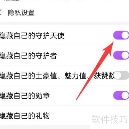 3、 进入隐私设置,开启隐藏守护天使功能即可。