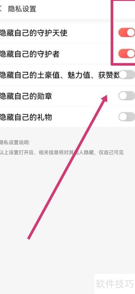4、 点击隐藏自己的守护天使右侧的圆钮,变红即成功,具体操作所示。