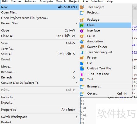 1、 首先启动Java集成开发环境,以常见的Eclipse为例。在已有的Java项目中,或新建一个Java工程后,依次点击文件菜单下的新建选项,选择类,即可创建一个新的普通Java类文件,为后续编程做好准备。整个过程操作简便,适合初学者快速上手。