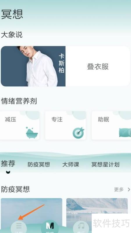 1、 启动大象冥想应用,选择底部的计划按钮。