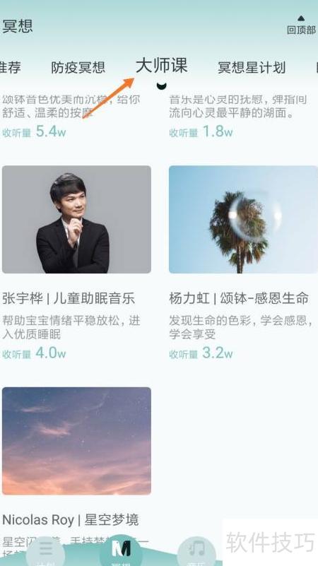 2、 进入计划页面后,点击顶部的大师课栏目。