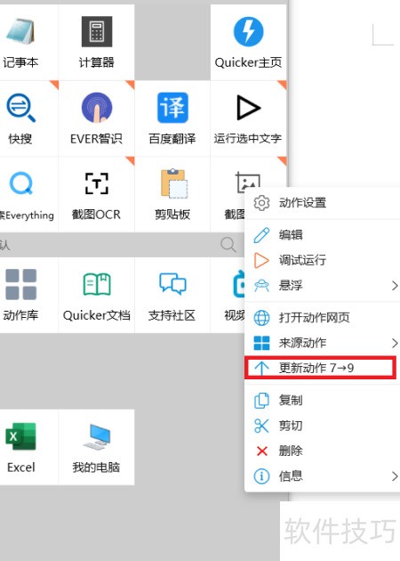 1、 右上角带橙色三角的动作可更新,右键点击该动作即可操作。