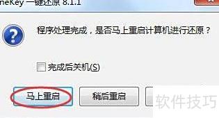 11、 点击后将弹出提示框询问是否立即重启电脑以执行还原操作,选择马上重启即可。