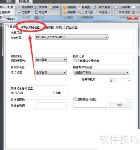 5、 在以太网配置界面勾选HMI参数设置选项。