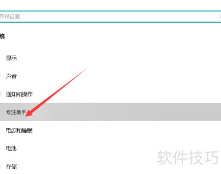 2、 进入界面后选择专注助手,新页面随即呈现。