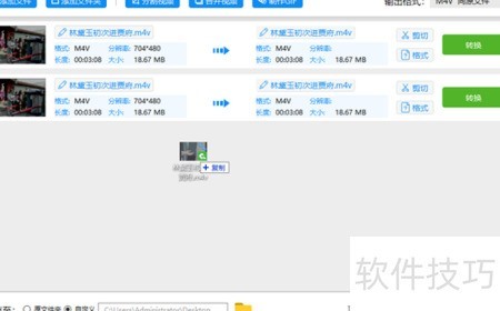 4、 下载软件后,双击视频转换器快捷方式启动程序。点击左上角添加文件或添加文件夹按钮,将电脑中H.264编码的蓝光M4V格式视频导入软件,也可直接拖拽文件至界面完成导入操作。