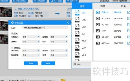 2、 转换视频前需设定输出格式,可在自定义设置中选择MP4。若未手动选择也无妨,因系统默认输出格式即为MP4,无需额外操作即可完成转换。