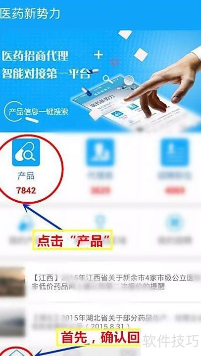 1、 打开医药新势力APP,进入首页后点击产品选项即可查看相关服务。
