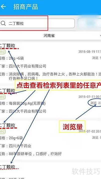 2、 点击输入框,输入需查询的产品名称,选择所在区域或医院,操作示意所示。