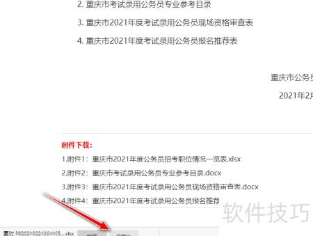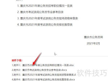 3、 进入公告页面,于附件下载处点击招考职位一览表进行下载。