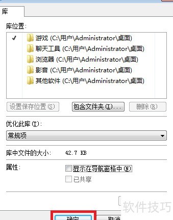 3、 修改名称后即可添加,选中新建库,右键点击属性,进入包含文件夹选项。