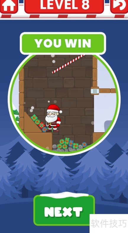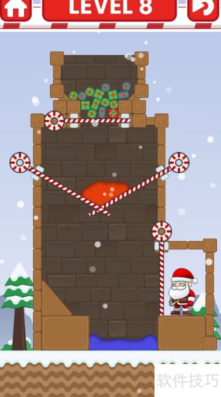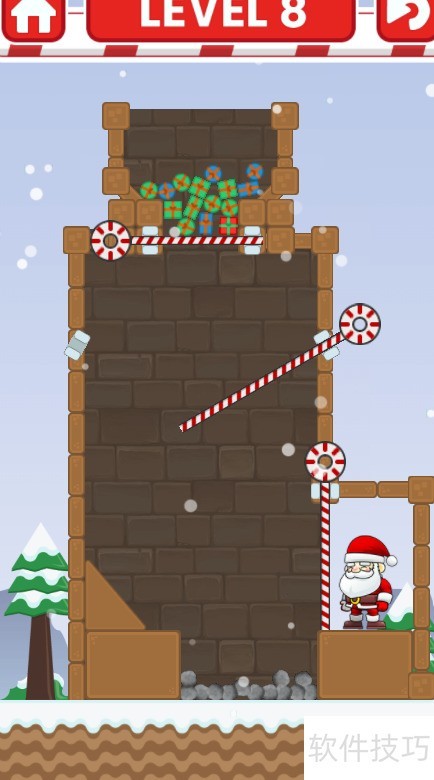 4、 拔掉圣诞老人左边的竖插销,按图示操作即可通过。