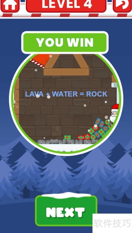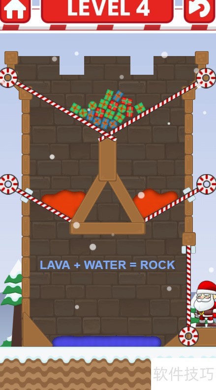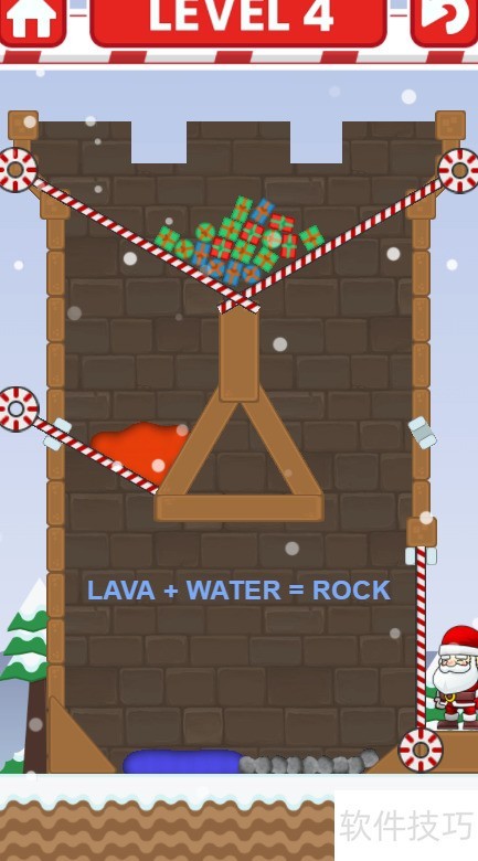 1、 关卡提示岩浆遇水将凝固成石,示意图如下。