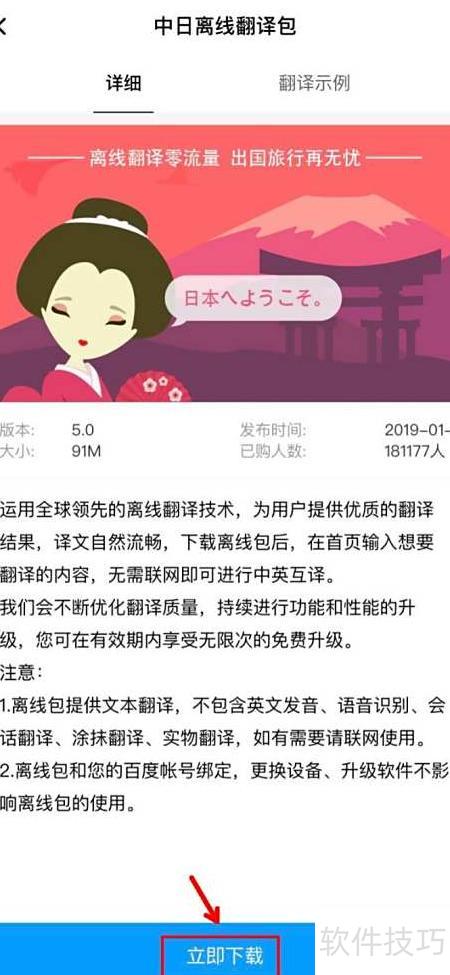 4、 在下载页面选择中日离线翻译包进行安装